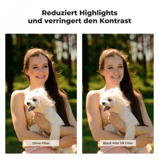 - * 【18 Nanobeschichtungen】Black Mist Filter Glas ist beidseitig nanobeschichtet. Der Schutz von Filter und Objektiv von allen Seiten ist dauerhaft.