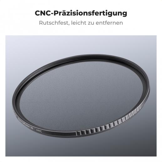- * 【Ultra Slim Frame】Black Mist Filter mit Luftfahrtaluminium misst die Breite des Rahmens nur 3,3 mm, ultraschlanker Rahmen ohne dunkle Ecken am Weitwinkel- und Teleobjektiv. CNC-rutschfestes Design zum effizienten Entfernen und Installieren des Filters.