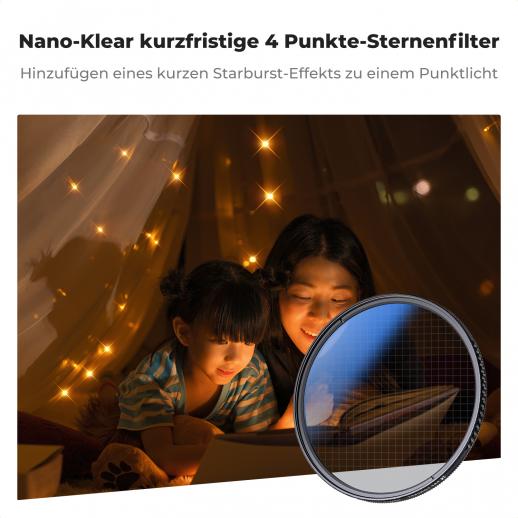 K&F Concept 82mm 4-Punkt-Feinlinien-Sterneffektfilter, Cine & Dreamlike Spezialfilter, 18-lagig beschichtetes optisches Glas mit 3 Staubsaugertüchern – Nano-Klear-Serie