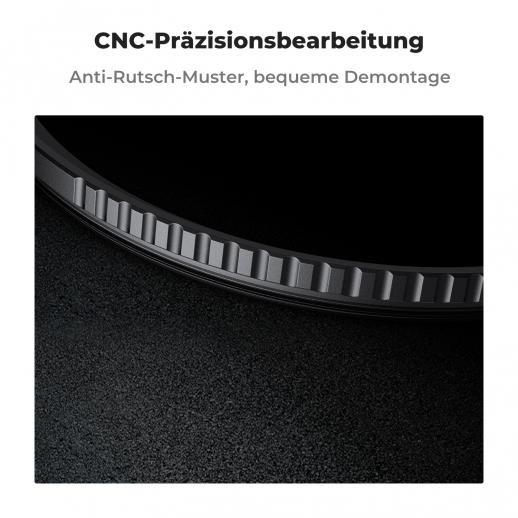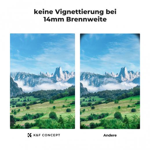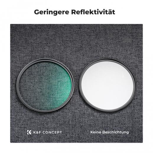 - * 【Mehrfachbeschichtung und Objektivdeckel】Doppelseitige 18 Schicht Beschichtung schützt das Objektiv und reduziert zudem Reflexionen vom Filter selbst. Der Objektivdeckel in einzigartiger Größe von K&F Concept passt perfekt auf das Kameraobjektiv.