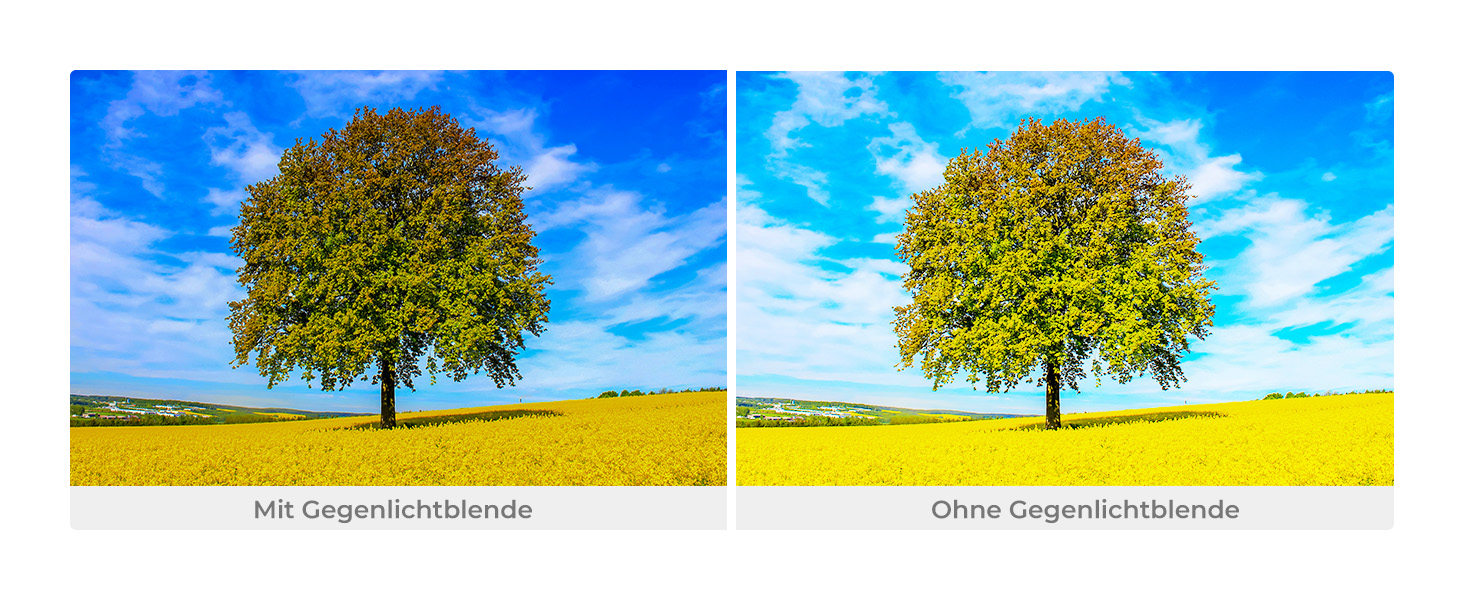 - * 【Reduziert die Blendenbildung】Die matte Innenseite der Gegenlichtblende verhindert oder begrenzt Streulicht durch direktes Licht auf der Vorderseite des Objektivs