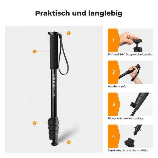 K&F Concept Kamera-Einbeinstativ, 63" Aluminium-Fotografie-Einbeinstativ mit 5-teiliger Höhe,