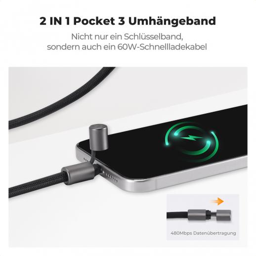 Intelligentes, robustes und vielseitiges Schlüsselband mit integriertem Ladekabel.
