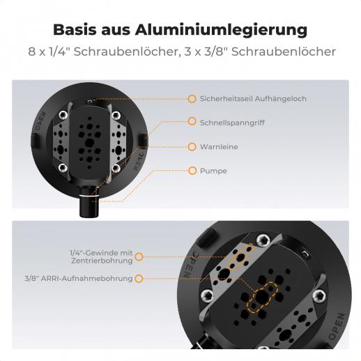 - * Weitgehend kompatibel: Der Saugnapf verfügt über mehrere Erweiterungsschnittstellen mit 1/4-Zoll- und 3/8-Zoll-Schraubenlöchern und Positionierungslöchern. Die Oberseite der Erbsenschote hat 1/4-Zoll- + Teleskop-Positionierungsstifte.