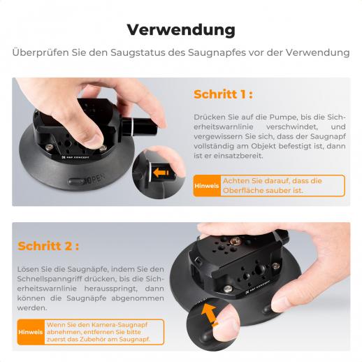 - * Starke Adsorption: Der 4,5 Zoll Saugnapfhalter mit Vakuumpumpe ist so konzipiert, dass er eine Vielzahl von kleinen Geräten oder Ausrüstungen sicher und fest auf glatten Oberflächen hält.