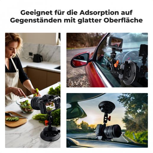 Hervorragende Unterstützung für K&F-Kameras und Action-Kameras. Es handelt sich um eine gut gefertigte Saugnapfhalterung mit einem Gelenk, das an jede Konfiguration angepasst werden kann und an das Geräte aller Art angeschlossen werden können, sofern sie über eine 1/4 Schraube verfügen.