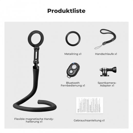 - * 【Verschiedene Aufnahmeszenen】 Das magnetische Ringdesign ermöglicht eine Drehung des Telefons um 360° für horizontale und vertikale Aufnahmen, und die zweistufige Dämpfungswelle ermöglicht eine Neigungseinstellung.