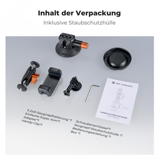 - * 【Überragende Saugkraft】 – Leistungsstarker Saugnapf von K&F Concept. Ausgestattet mit 3 Zoll großen Saugnäpfen aus Gummi kann er fest auf glatten, flachen, nicht porösen Oberflächen wie Autoglas, Motorhaube, Karosserieseiten, Fliesen, Holztischplatten usw. befestigt werden.