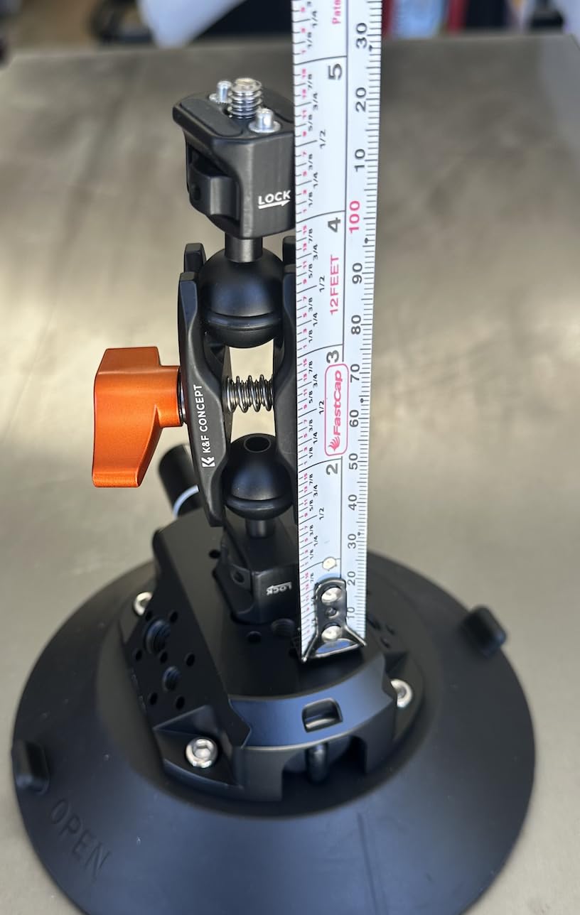 Diese K&N Saugnapfbasis ist erstklassig. Die Materialien und die Bearbeitung des Sockels sind perfekt. Unzählige Befestigungsmöglichkeiten für fast jedes Kamera- oder Beleuchtungsgerät, das mir einfällt. Ich habe es verwendet, um meinen DJI Action 5 an meinem Jeep zu montieren, mit großartigen Ergebnissen. Derzeit verwende ich es in der Kabine meines Segelboots, um Projekte zu dokumentieren, bei denen Bodenständer Dinge überladen würden.
