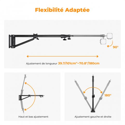 - * 【Verstellbar und stabil】 Die Dreiecksstruktur erhöht die Stabilität des Auslegerarms und ermöglicht eine Verlängerung auf bis zu 180 cm, um verschiedenen Anforderungen gerecht zu werden. Er kann sicher an festen Wänden oder Decken montiert werden und bietet eine zuverlässige Lösung für Ihren Geräteaufbau.