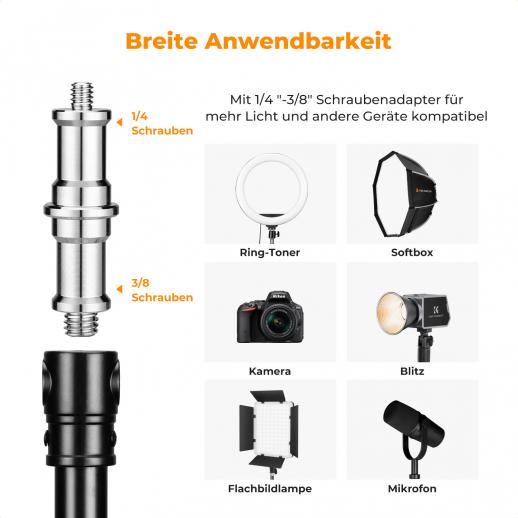 - * 【Vielseitige Kompatibilität】 Ausgestattet mit einem Standard-Schraubenadapter von 1/4" auf 3/8" lässt sich dieser Galgenarm nahtlos mit verschiedenen leichten Studiogeräten verbinden, darunter Kameraköpfe, Fülllichter und Mikrofone. Seine breite Kompatibilität macht ihn ideal für den Einsatz in Friseursalons, Tattoo-Studios, Schönheitssalons, Musikstudios, Fotostudios und Live-Streaming-Setups.
