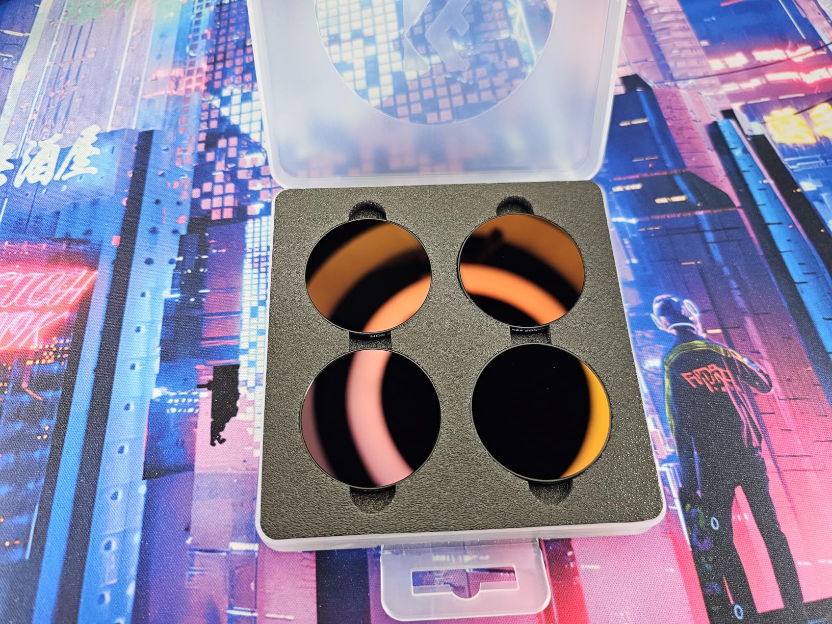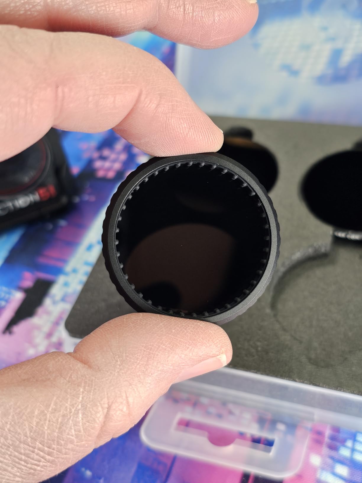 Die Objektive sind durchsichtig und das verwendete Material besteht aus Metall und Glas und nicht nur aus Kunststoff. Sie sind sehr robust und gut verarbeitet und es treten kaum bis gar keine Blendungsprobleme auf, wenn Sie das Objektiv an der Kamera verwenden. In meinem Fall verwende ich sie für den DJI Action 5 Pro.