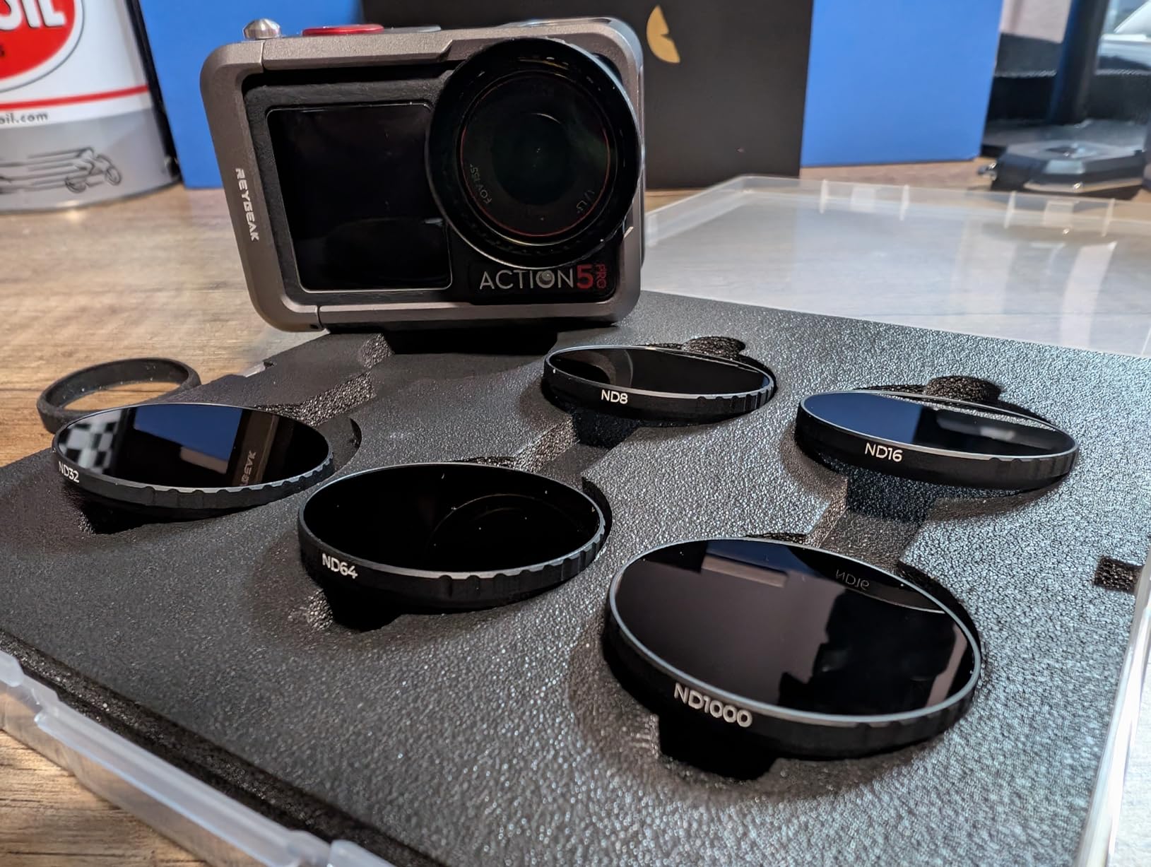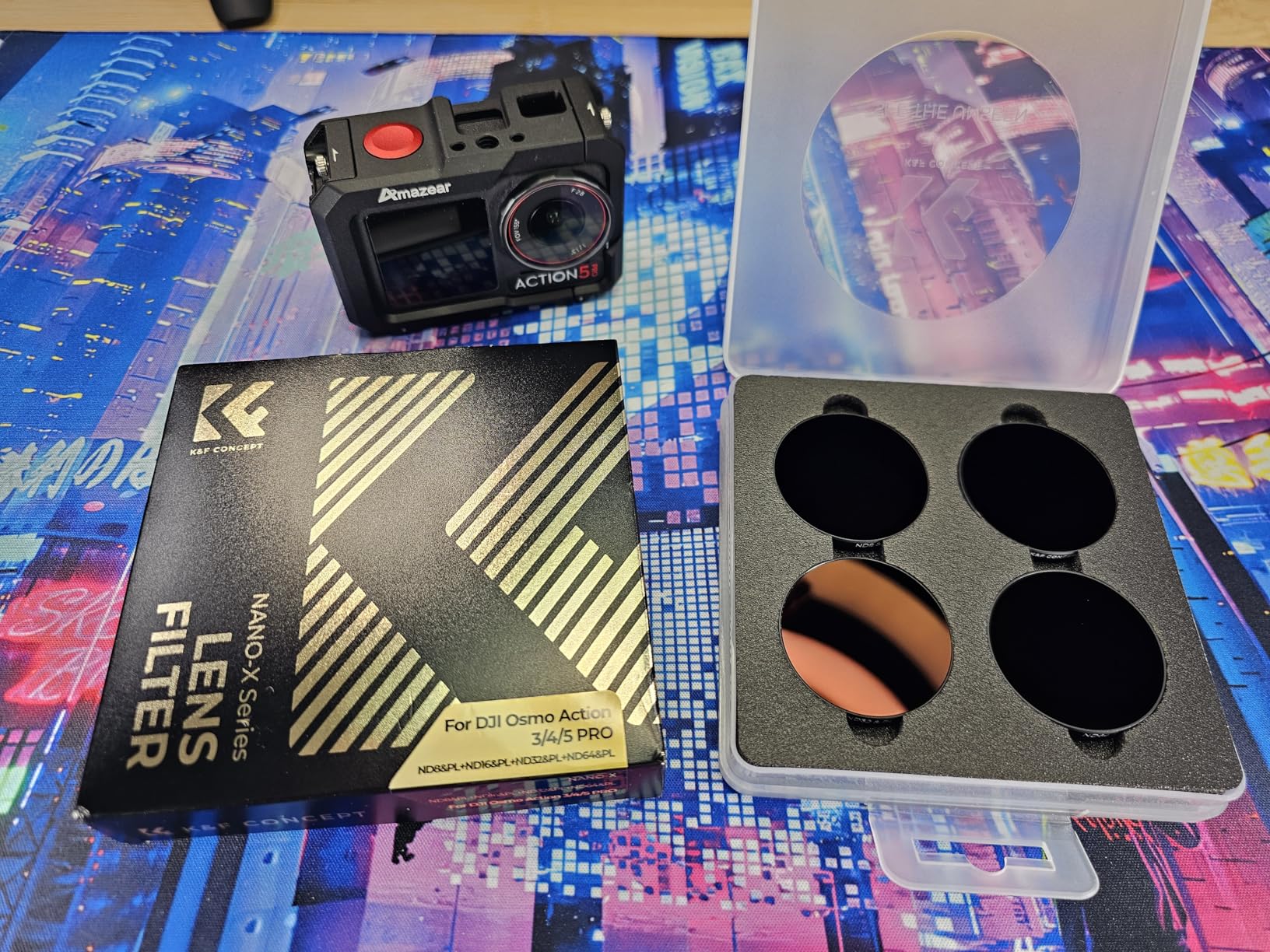 Es stehen viele Filter zur Auswahl, die mit den Kameras der DJI Action-Serie funktionieren, aber ND-Filter sind zweifellos die wichtigsten. Sie möchten die beste Qualität, und K&F scheint heutzutage an der Spitze hochwertiger Objektivfilter zu einem guten Preis-Leistungs-Verhältnis zu stehen. Das Gehäuse, in dem sich die Filter befinden, lässt jedoch zu wünschen übrig. Das harte Plastik war bei der Ankunft kaputt, daher ist es am besten, ein Filtergehäuse in Betracht zu ziehen, um es mit diesen zu bestellen. Aber ansonsten ein 5-Sterne-Produkt.